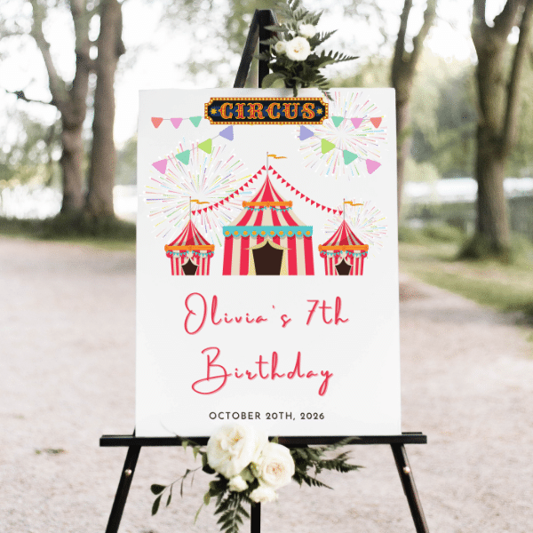 Circus Carnival Party Sign, Custom Birthday Sign Template