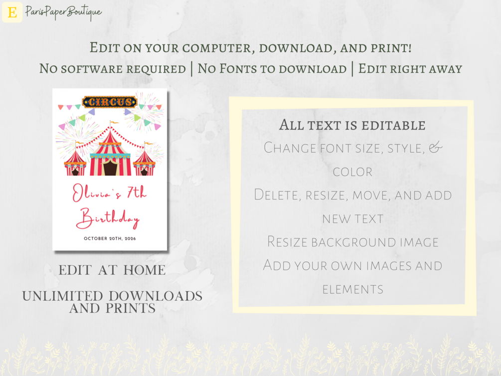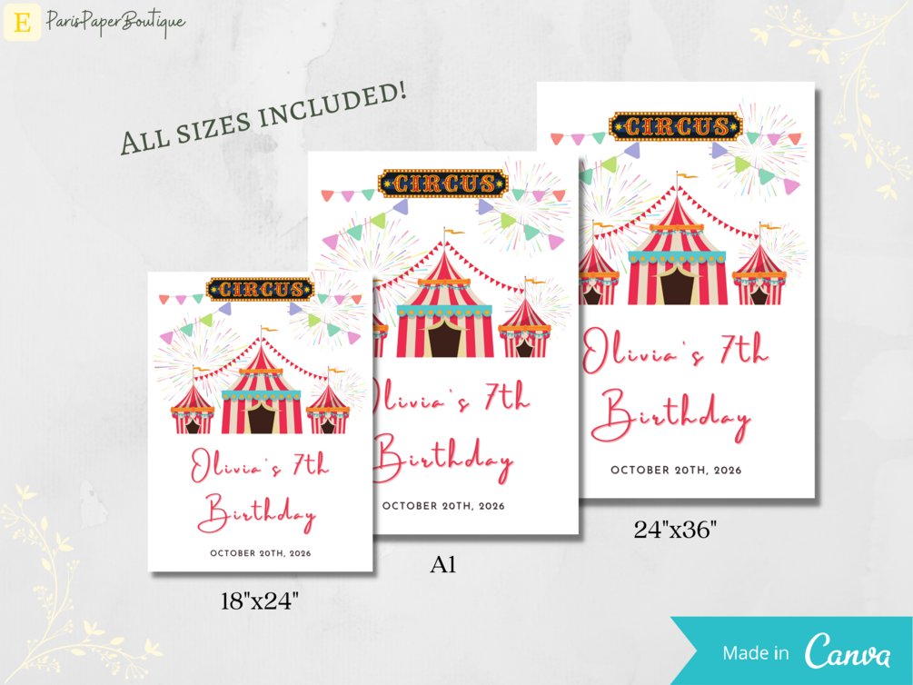 Circus Birthday Party Sign, Custom Welcome Sign Template, Circus Theme Birthday Decor, DIY, Editable, Printable Sign, Digital Download, Kids Birthday Decor, Outdoor Birthday Party, Party Decorations, Custom Party Sign, Custom Birthday Decor, Custom Birthday Party Signage, Fancy Welcome Sign, Circus-Themed Birthday Party Decor, Kids Birthday Party Sign